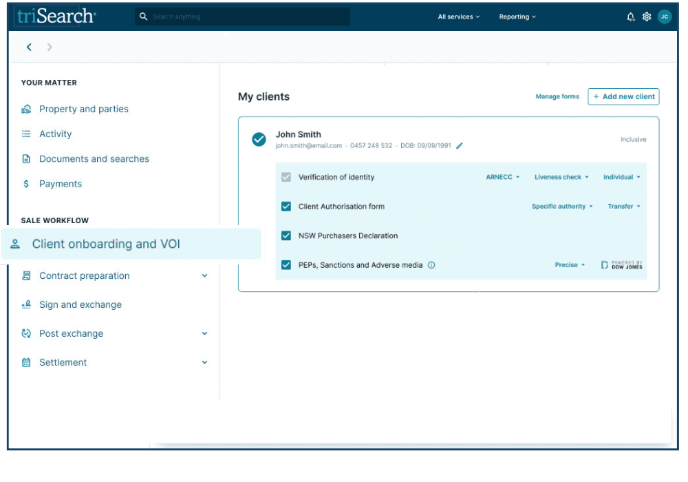 All Searches ordered via the Client Onboarding & VOI bundle seamlessly integrate with your matter in triConvey, mapping data to and from your Search.