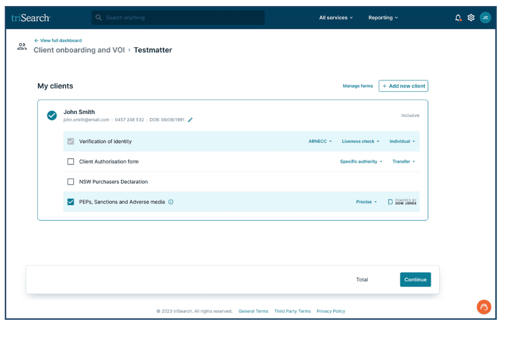 triSearch is pleased to introduce a new way to onboard your customers, that supports your AML/CTF obligations. This new solution bundles your required due diligence to kick start your matter with ease.